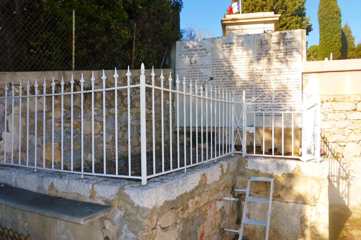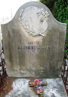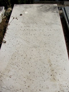 Plusieurs sources, dont Bertrand Beyern, une fois n’est pas coutume, indique que sa tombe a disparu au cimetière du Vieux château : la réalité est qu’elle est bien présente, mais dans ce cimetière du Trabuquet.