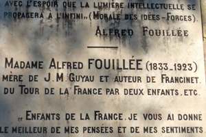 morale républicaine qui prône le travail, l’épargne et la discipline sociale. Dans le même tombeau repose son fils d’un premier lit, le philosophe et poète Jean-Marie GUYAU (1854-1888), considéré comme le « Nietzsche français » [2]. Il fut également auteur de manuels scolaires. Malade, il alla s’installer à Menton.