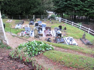 Petit cimetière s’étageant en terrasses à partir de l’église, dans le cadre isolé d’un village à l’habitat dispersé. Rien à signaler.