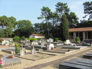 C’est en plein milieu de la forêt, de part et d’autre de la route des Lacs, que se trouve le cimetière de Soorts-Hoosegor. Rien de particulier à signaler : ici, ni statuaire ou chapelle. Tout est dans l’horizontalité, dans la sobriété de dalle souvent quelconques posées sur le sable.