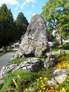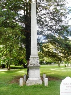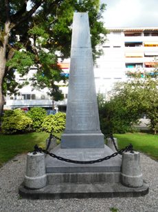 Jean-Jacques de SELLON (1782-1839), philanthrope qui créa en 1830 la Société de la Paix visant à lutter pour la paix en Europe, démarche pionnière qui en inspira d’autres (de la Croix Rouge à la SDN). En 1832, pour commémorer la création de cette société, il fit édifier dans le parc de sa demeure un obélisque qui constituait une des étapes didactiques d’un parcours dédié à la Paix ; les inscriptions portées sur l’obélisque célébrant les acteurs et les grands penseurs pacifistes. Jean-Jacques Sellon exprima le souhait de reposer au pied de l’obélisque, volonté qui fut respecté. Ce monument demeura in situ jusqu’en 1907, date à laquelle il fut transféré au cimetière du Petit-Saconnex. Peu entretenu, il fut finalement déplacé ici en 2006.