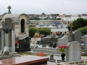 Le cimetière de Port-Louis, dans le Morbihan, offre une vue plongeante sur la mer, témoignage breton des cimetières marins.