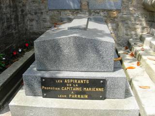 Il repose non pas dans le cimetière, mais à l’extérieur de celui-ci, au niveau du monument aux Morts. Deux tombes sont placées de part et d’autre d’un calvaire : celle de Marienne à gauche, et le cénotaphe du lieutenant François Martin, assassiné dans les mêmes conditions, et également Compagnon de la Libération, mais qui repose à Hardricourt, dans les Yvelines.