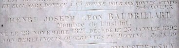Dans sa tombe repose également le journaliste Henri BAUDRILLART (1821-1892), son gendre, qui fut l’un des fondateurs de la Société démocratique des libres penseurs. Il fut élu membre de l’Académie des sciences morales et politiques et fut titulaire de la chaire d’histoire économique au Collège de France. Il était le père du cardinal Alfred Baudrillart, membre de l’Académie française.