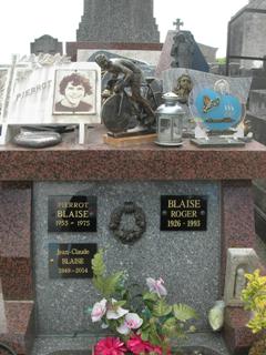 C’est ici que repose un météore du cinéma révélé par Louis Malle dans son film Lacombe Lucien : Pierre BLAISE (1955-1975). Repéré par le réalisateur alors qu’il était bucheron à Moissac, il devint le héros de ce film, polémique car écorchant le mythe politiquement correct du résistancialisme partagé à l’époque, traitant de la jeunesse gestapiste française sous l’Occupation. Blaise s’était d’abord rendu au casting par jeu. Il tourna trois films encore, puis se tua dans la voiture qu’il s’était offerte avec l’argent obtenu par son rôle, en sortant d’un bal, s’écrasant contre un platane.