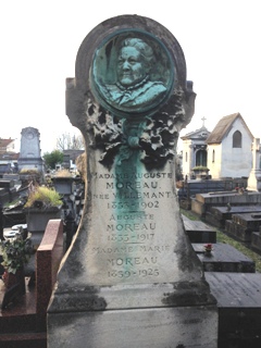 Auguste Moreau repose dans son tombeau d’origine, orné d’un médaillon de lui représentant sans doute son épouse. Dans ce même tombeau repose également son fils, Hyppolyte François MOREAU (1858-1932), qui fut également sculpteur et qui est régulièrement confondu avec son oncle Hippolyte, dont j’ignore la localisation de la tombe.