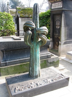 Siné fut enterré au cimetière Montmartre, où il avait déjà fait faire sa tombe : en bronze, elle est surmontée d’une sculpture de cactus, qui évoque une main en train de faire un doigt d’honneur, oeuvre réalisée par Patrick Chappet ! Particularité : il s’agit d’une tombe collective, où il aimait l’idée de reposer auprès de ses amis. Nul ne connaît la liste exhaustive de ceux qui termineront là (on sait que ce sera le cas néanmoins des réalisateurs grolandais Benoît Delépine et Gustave Kervern).