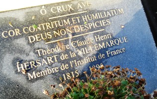 la culture bretonne. Ses fréquentations dans les salons parisiens, le poussèrent à s’investir dans la promotion de la Bretagne. Au contact de Jean-François-Marie Le Gonidec, véritable rénovateur de la langue bretonne, il étudia les chants et apprit à maîtriser son breton écrit. En 1839, il publia le Barzaz Breiz, chants populaires de la Bretagne qui lui donna à 24 ans un extraordinaire succès mondain et littéraire. Il publia le Dictionnaire Français-Breton qu’il avait travaillé en collaboration avec le Gonidec, mort entre temps, en 1857. Cumulant les honneurs, il devint en 1858 membre de l’Académie des inscriptions et belles-lettres. Le cimetière possède plusieurs tombes de cette famille.