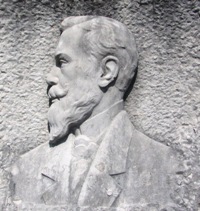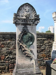 bronze par son fils Charles-Louis PICAUD (1855-1919), qui repose dans le même tombeau (il fut l’auteur de son propre médaillon, bien plus modeste, qui se trouve aussi sur le tombeau). Tandis que le père réalisa de nombreuses sculptures religieuses dans les églises du Roannais, le fils s’illustra par des sculptures profanes (plusieurs embellissent la ville de Saint-Etienne).