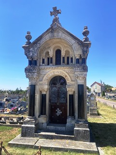 – Ce dernier se joue des taphophiles : il ne repose pas au cimetière d’Orgelet (39) où repose son père Jules, fondateur de la fromagerie. Il fut inhumé au cimetière de Lons-le-Saunier (39), avant un transfert au cimetière de Gurcy-le-Châtel (77).