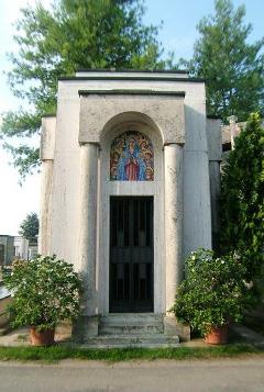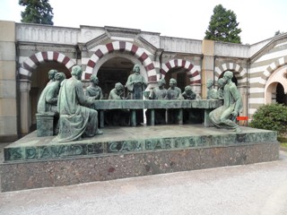 – Inhumé au cimetière monumental de Milan (Italie) sous une reproduction de la Cène.