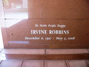 – Burton Baskin est inhumé au Home of Peace Memorial Park de Los Angeles (Californie), Irving Robbins au Forest Lawn Memorial Park de Cathedral City, tous les deux en Californie, aux Etats-Unis.