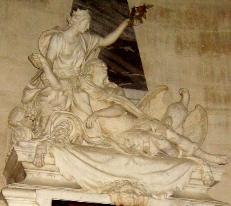 Les deux femmes qui pleurent sa disparition sont à droite une allégorie de la guerre sculptée sous les traits d’une Athéna désolée par la mort du général, t à gauche d’une allégorie de la Générosité (ou de la Science). Le bas-relief représente la bataille de Turckheim, qui donna l’Alsace à la France.