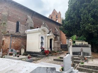 Dans l’ancien cimetière qui jouxte l’église, la brique rouge nous indique la proximité de Toulouse.