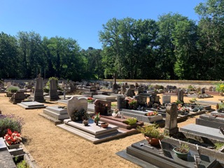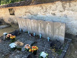 Petit cimetière rural entre ses quatre murs, entouré par la forêt, comme il y en a tant en Ile-de-France. Une vieille pierre, insérée dans le mur, nous indique sa date d’ouverture : 1874.