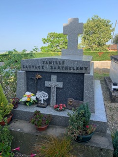 Le cimetière présenté ici n’est pas celui du bourg de l’Isle Joudain, mais celui du hameau de Cassemartin. Il s’agit d’un minuscule cimetière autour de son église, dominant le paysage environnant.