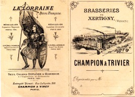 qui prit sa succession et maintint l’entreprise pendant les trente années qui suivirent au rang des premières brasseries de la région Est de la France. En 1921, la firme Trivier-Champion devient une société anonyme. La bière de Xertigny La Lorraine, jouissait dans tout l’Hexagone et dans les colonies française, d’une grande réputation.